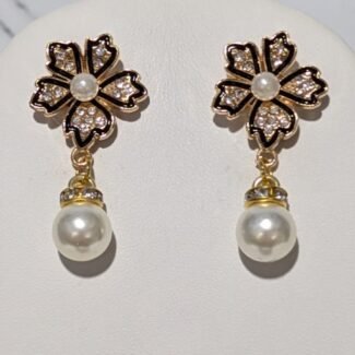 Black and Gold Flower Rhinestone Post Earring’s with Pearl Rhinestone Charm